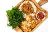 Crispy veal pancakes fried in stewed butter