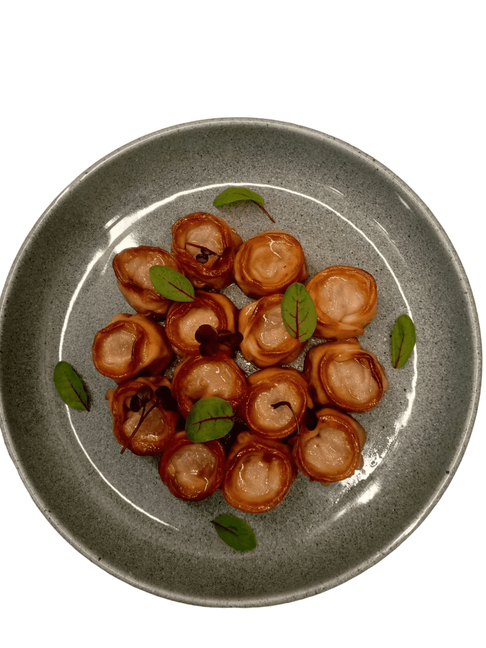 РАВИОЛИ С ГРЕБЕШКОМ馄饨馅料:扇贝和虾,配佩科里诺奶油酱和红色鱼子酱